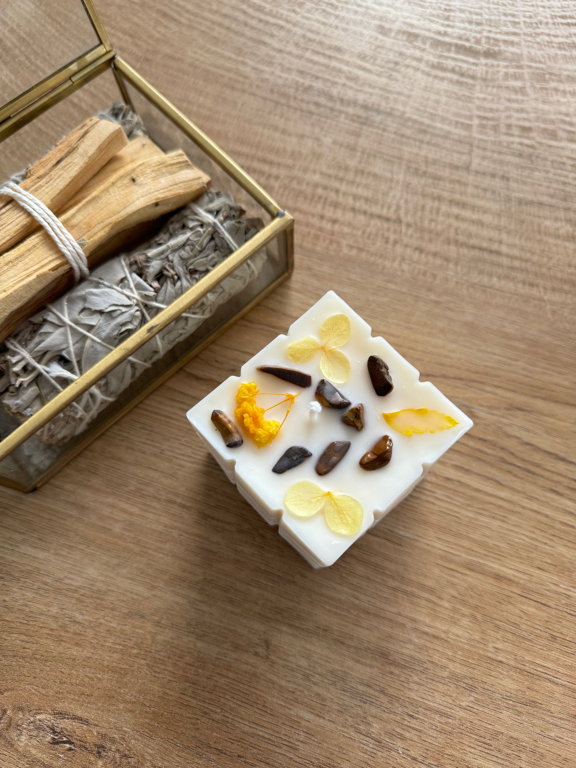 Renforcez votre force intérieure avec notre bougie de rituel imprégnée de cristaux d'œil de tigre. Pierre de protection et de courage, l'œil de tigre équilibre les énergies, stimule la confiance en soi et apporte une clarté mentale inégalée. Elle aide à surmonter les peurs, à prendre des décisions éclairées et à canaliser une énergie positive et stable. Allumez cette bougie pour renforcer votre résilience, attirer l’abondance et cultiver un sentiment de sécurité et de détermination. Parfaite pour créer un espace propice à la confiance et à l’autonomisation, cette bougie devient un allié indispensable pour affronter chaque jour avec assurance.
