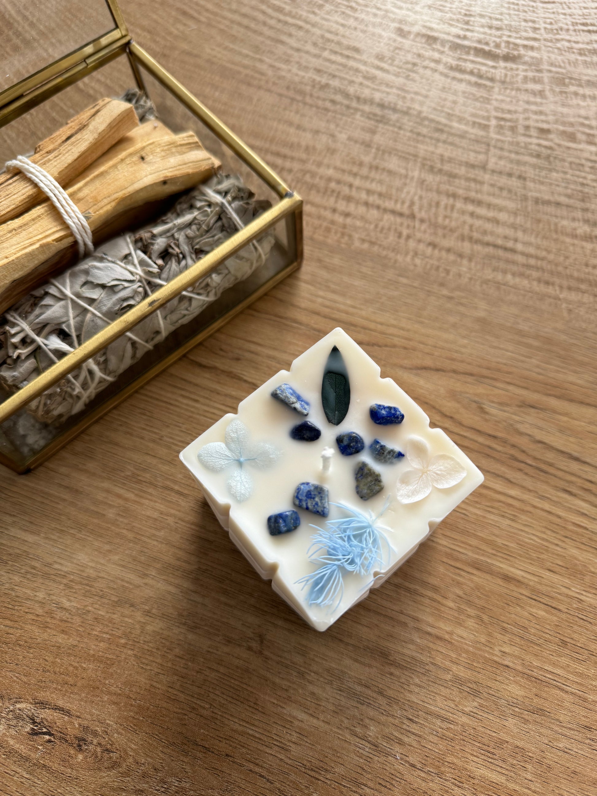 Invitez les bienfaits uniques de la sodalite dans votre vie avec notre bougie de rituel, enrichie de ses cristaux puissants. Connue comme la pierre de la logique et de l’intuition, la sodalite aide à équilibrer le mental et les émotions, favorisant une pensée claire et structurée. Elle est idéale pour apaiser l’anxiété, stimuler la confiance en soi et encourager une communication authentique. Allumez cette bougie pour dissiper les énergies négatives, renforcer votre concentration et créer un environnement propice à l’introspection et à la sérénité. Une alliée précieuse pour vos pratiques spirituelles et vos moments de calme, cette bougie transforme chaque instant en un rituel de bien-être profond.